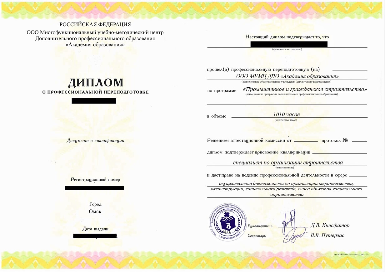 • Диплом о профессиональной переподготовке установленного образца. Срок действия: бессрочно